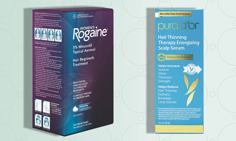 There's a reason why Rogaine is such a go-to for treating hair loss — it actually works. Case in point? The brand's 5% Minoxidil Topical Aerosol Hair Regrowth Treatment. It contains minoxidil to help stimulate hair growth and thickness, but it also works magic on your scalp: A healthy scalp is the key to healthy hair, you see, and the blend of alpha hydroxy acids in Rogaine's formula gently exfoliate, creating the optimal environment for hair to grow. After the AHAs work their deep-cleaning magic, a blend of botanical extracts and emollients condition and moisturize your scalp.